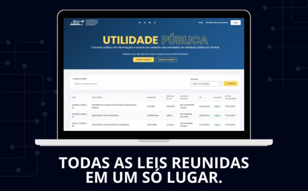 Uma nova ferramenta desenvolvida pela Assembleia Legislativa do Paraná (Alep) facilita o trabalho de entidades paranaenses na manutenção do Título de Utilidade Pública. A partir de agora, todo o trâmite necessário para atualizar a concessão já adquirida poderá ser realizado por meio do site: https://utilidadepublica.assembleia.pr.leg.br/.