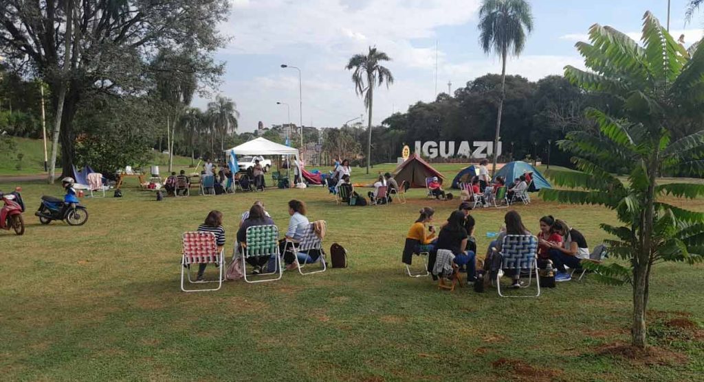 Professores da rede pública da província de Misiones deram início, nessa segunda-feira (3), a um acampamento na rotatória de acesso à cidade de Puerto Iguazú, como parte da mobilização pela recomposição de seus salários, corroídos pela inflação.