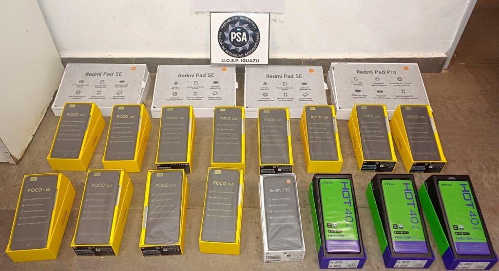 Agentes da Polícia de Segurança Aeroportuária (PSA) da Argentina apreenderam, na última quinta-feira (27), quatro tablets e 16 celulares avaliados em mais de P$ 4,8 milhões (cerca de R$ 22 mil na cotação praticada na fronteira).