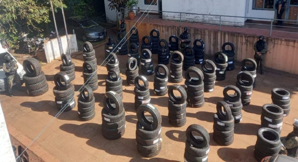 Agentes da Polícia de Misiones localizaram, na manhã dessa quinta-feira (18), um imóvel na periferia de Puerto Iguazú que era usado como depósito para armazenar pneus contrabandeados do Paraguai.
