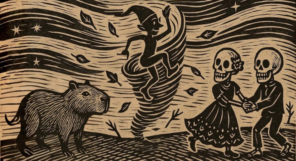 No Brasil, esse mesmo dia, frente à invasão cultural neocolonial, ganhou outra resposta. Em 2003, o Dia do Saci foi instituído por lei para lembrar que o imaginário também é território. O Saci nasce do encontro entre culturas indígenas e africanas. É símbolo da esperteza, da resistência e da crítica travessa ao poder. Sua celebração é uma defesa da memória viva — a recusa de deixar que o Brasil se apague sob fantasias importadas.