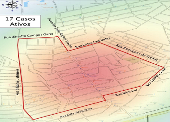 CONSIDERANDO Mapa de Calor dos casos ativos para a COVID-19 em Foz do Iguaçu do dia 27 de julho de 2020, constante do Boletim Epidemiológico Painel Coronavírus de Foz do Iguaçu;