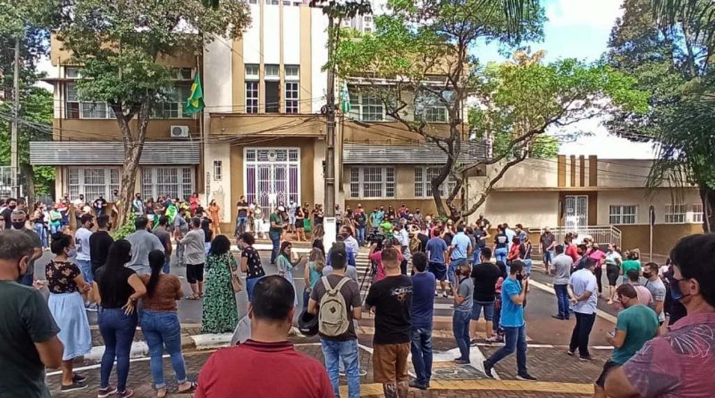 Com cartazes, bandeiras nacionais e palavras de ordem, comerciantes e prestadores de serviços se concentraram na frente da prefeitura. Depois, seguiram em passeata pela Avenida Brasil e concluíram a mobilização diante da Câmara de Vereadores, por volta das 11h30.