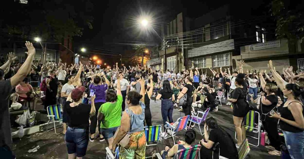 Após a assembleia que aprovou a continuidade da paralisação, os profissionais da educação e servidores seguiram em carreata até o condomínio onde, segundo a categoria, mora o prefeito Chico Brasileiro (PSD). No local, com buzinaço, faixas e sonorização improvisada, pediram o pagamento de “direitos adquiridos ao longo dos últimos anos”.