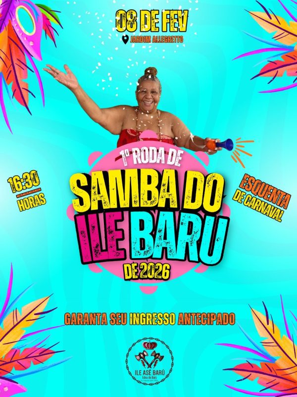 Está confirmada a realização do evento Samba do Ile Baru, que acontece em 08 de fevereiro, reunindo samba bom, energia e astral lá em cima, climinha de carnaval, comidinha boa e chopp gelado.