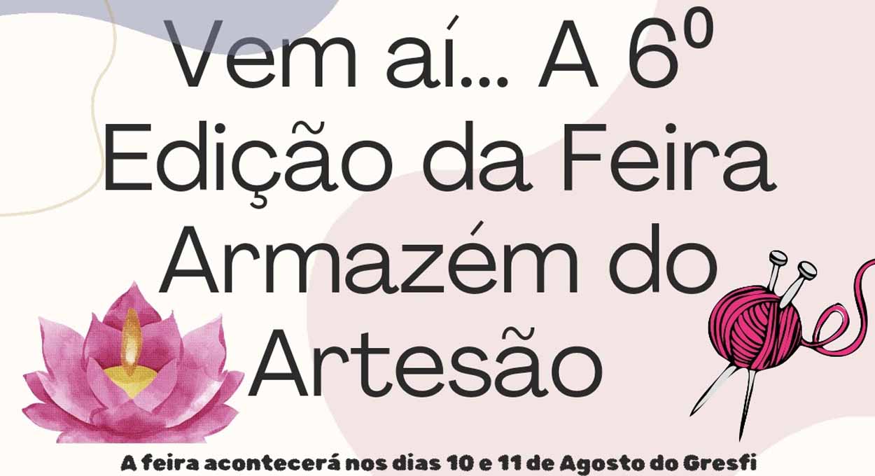 A Feira Armazém do Artesão, que será realizada nos dias 10 e 11 de agosto no GRESFI. Nesta edição, a feira contará com 53 expositores, selecionando até três segmentos por ramo para que todos possam apresentar a produção e vender ao público.