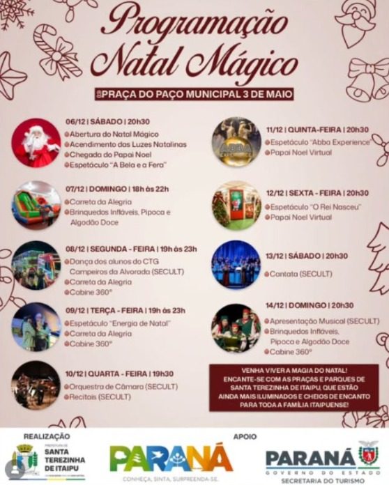 Neste sábado, dia 6, às 20h30, a Praça do Paço Municipal 3 de Maio vai ser tomada pela magia do Natal com: