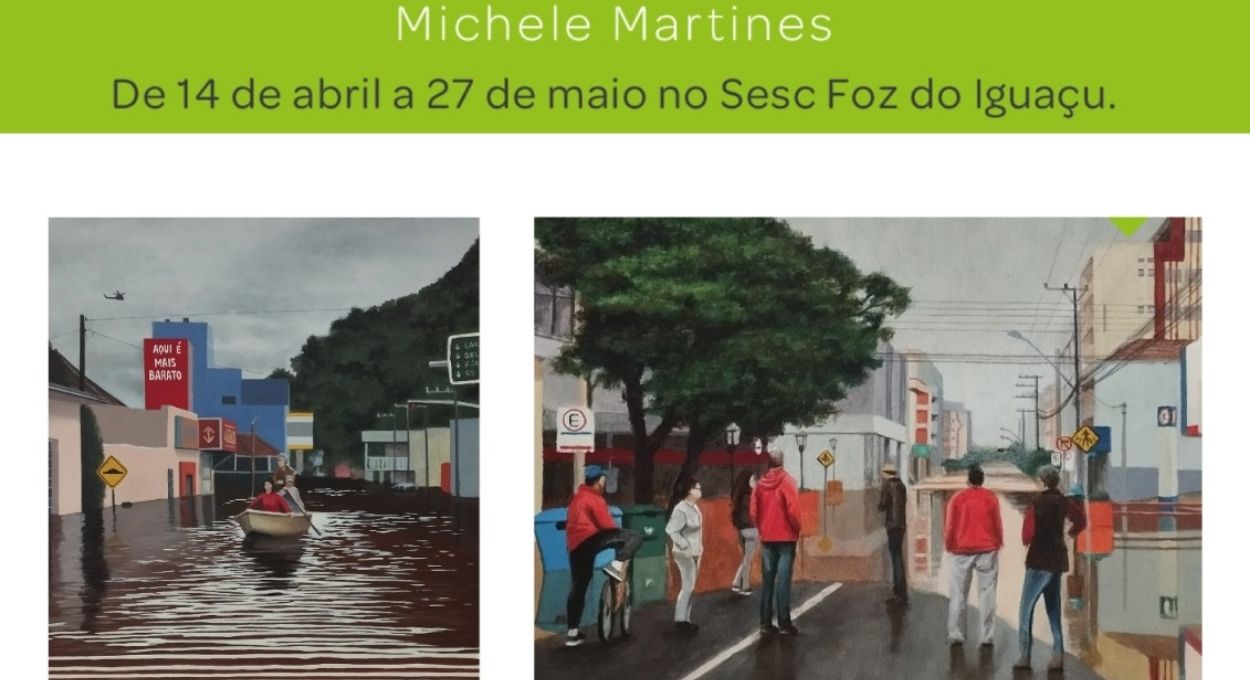 Uma mostra que reúne pinturas e fotografias sobre paisagens urbanas marcadas por enchentes, trazendo reflexões sobre memória, tempo e crise ambiental.
