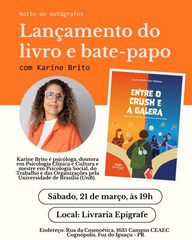 Foz do Iguaçu recebe o lançamento do livro “Entre o crush e a galera: Manual de sobrevivência do adolescente”, que será realizado no dia 21 de março, a obra reúne reflexões importantes sobre relacionamentos.