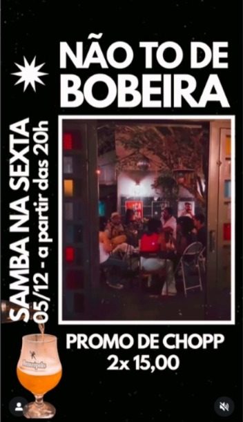 Sexta, dia 05/12, vamos entrar no clima de férias com um sambinha gostoso comandado pelo grupo Não Tô de Bobeira!