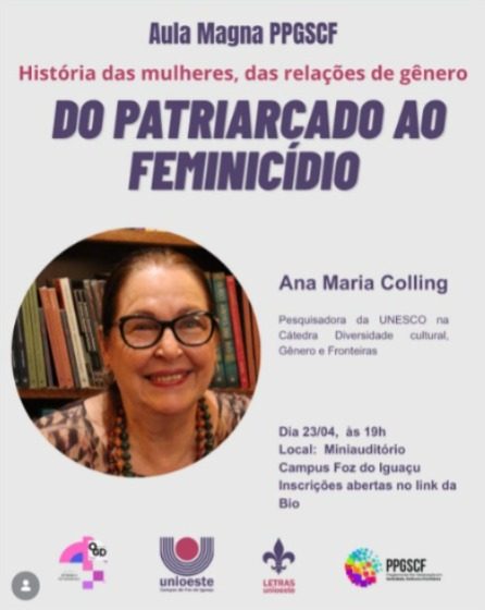 Foz do Iguaçu recebe o a aula Magna PPGSCF do Patriarcado ao Feminicídio, no dia 23 de abril.