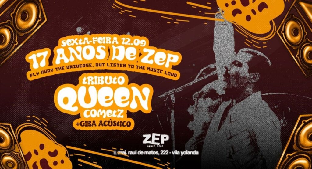 Venha viver essa experiência no Zep, cantar e dançar com um tributo especial à banda Queen, revivendo as icônicas apresentações de Freddie Mercury e companhia. A noite começa com show acústico do Giba, tocando as melhores do rock clássico.