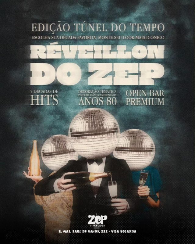 O Réveillon do ZEP retorna com sua edição mais nostálgica e explosiva: Túnel do Tempo. Prepare-se para embarcar em uma jornada épica por cinco décadas de hits que marcaram gerações e que ninguém consegue resistir a dançar. Tudo isso com Open Bar Premium e uma discotecagem que é verdadeira ciência do tempo.