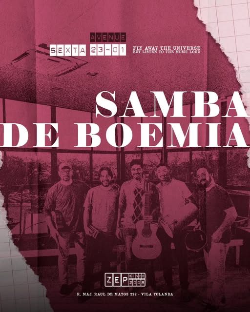 Vem sambar com a gente! Nesta sexta, às 20h30, acontece o Samba de Boemia no nosso querido Zeppelin Avenue. Uma noite especial para celebrar a música, a cultura e a boa companhia.