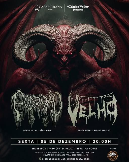 Velho, formada em Duque de Caxias (RJ), é uma das grandes referências do Black Metal nacional e latino-americano. Com uma sonoridade crua, direta e sem concessões, mistura velocidade e agressividade para criar um Speed/Black Metal brutal, com letras em português.