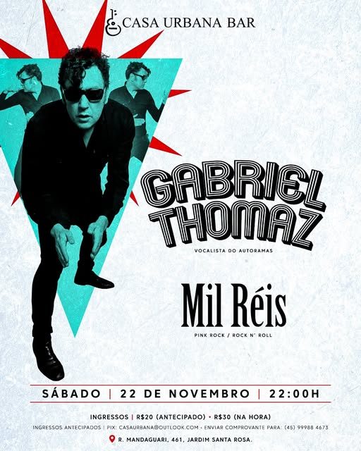 No sábado, dia 22/11, a Casa Urbana vai receber @gabrielthomaztrio, vocalista da banda AUTORAMAS.
