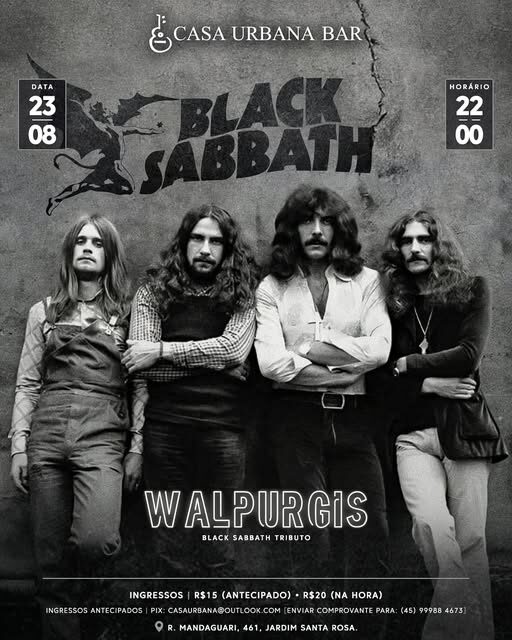 Neste sábado (23/08), Foz vai tremer ao som da @blacksabbathfoz! A banda promete trazer de volta os clássicos lendários do Black Sabbath, que marcaram gerações.