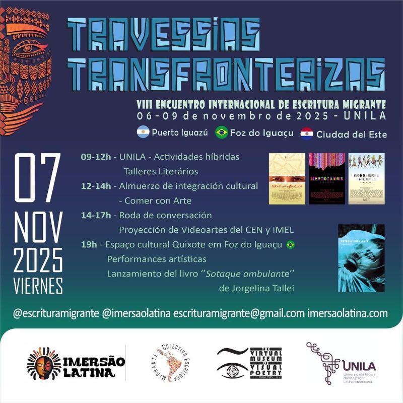 O Quixote Espaço Cultural tem a alegria de integrar a programação do evento Travessias Transfronterizas, do VIII Encuentro Internacional de Escritura Migrante, onde estaremos com nosso espaço aberto para a Tertúlia (Sarau) Brasiguaia com experiências e performances, além de lançamento de livros!