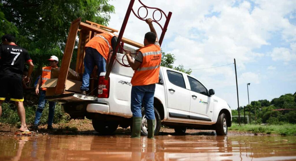 No Paraguai, a retirada de cerca de 120 famílias dos pontos mais críticos, como os bairros San Rafael e San Agustín, vizinhos à Ponte Internacional da Amizade, foi iniciada ainda no domingo (29), com o apoio da diretoria paraguaia de Itaipu, que forneceu caminhonetes para o recolhimento de móveis, colchões, eletrodomésticos e objetos pessoais.