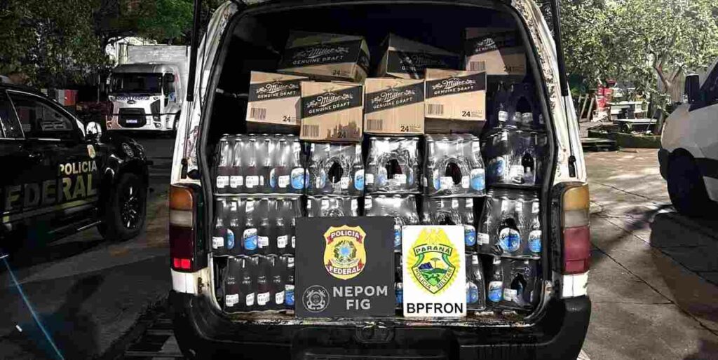 Entre os itens estavam marcas de cervejas argentinas. Em patrulhamento na fronteira, as equipes abordaram uma van de placas paraguaias, carregada com a mercadoria.