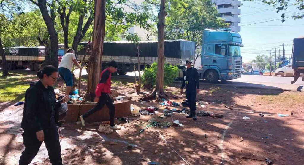 A Polícia Nacional do Paraguai desocupou, na tarde dessa segunda-feira (9), o espaço no canteiro entre a Avenida Monseñor Rodríguez e a Rodovia PY02, a cerca de dois quilômetros da Ponte Internacional da Amizade, que era utilizado de forma permanente por usuários de drogas, que acampavam no local.