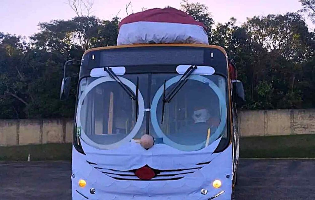 Neste ano, além do motorista caracterizado como Papai Noel — que distribui balas aos passageiros —, o próprio ônibus recebeu decoração especial, com elementos que remetem ao “bom velhinho”. O veículo também tocará músicas natalinas.