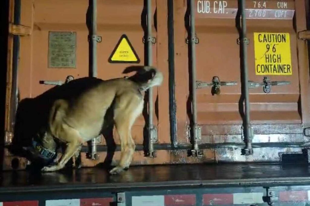 “Ao inspecionar a caixa apontada pelo cão, a equipe policial localizou diversos tabletes de substância entorpecente”, reportou a polícia. O caminhão estava carregado com: