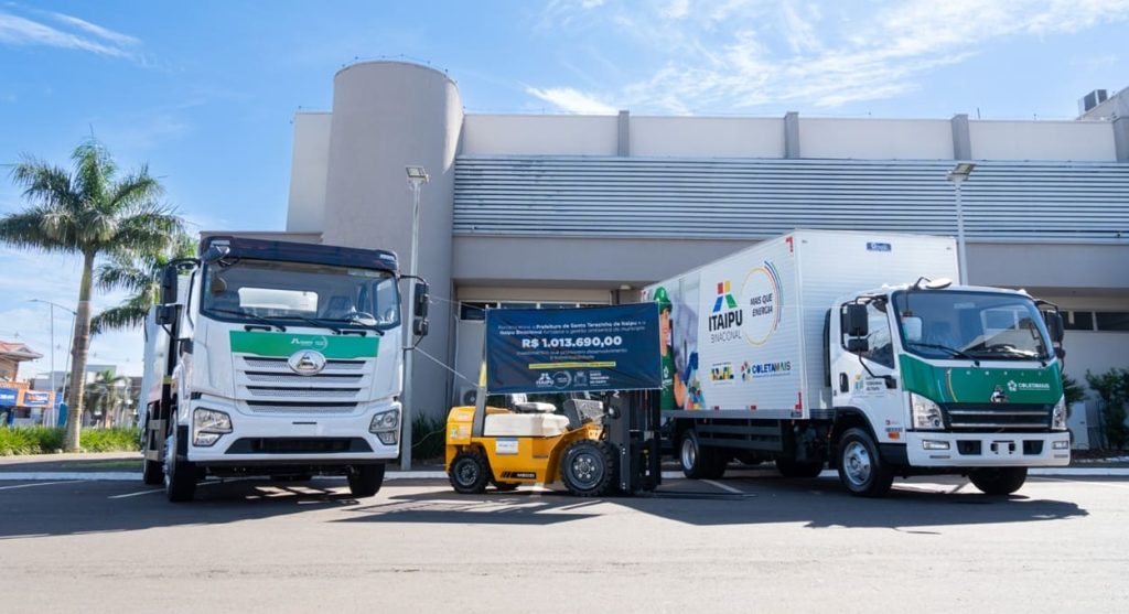 Itaipu Binacional entregou, nesta terça-feira (27), dois caminhões e uma empilhadeira para uma entidade que atua com reciclagem na região de Foz do Iguaçu.