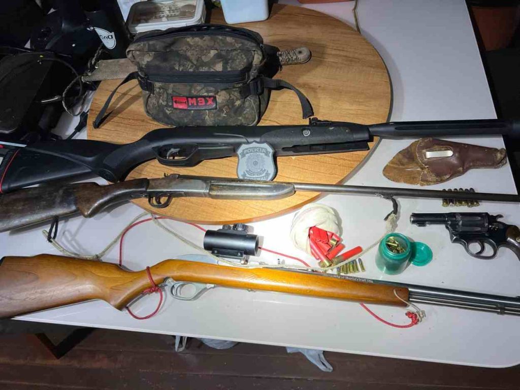 Um dos investigados foi preso em flagrante na operação, por posse ilegal de arma de fogo. No imóvel, os policiais apreenderam quatro armas, munições, volumes de carne de animais silvestres congelados e petrechos utilizados em rinha de galo. Também foi identificada uma estrutura destinada à prática ilegal de briga de galos. As investigações seguem.