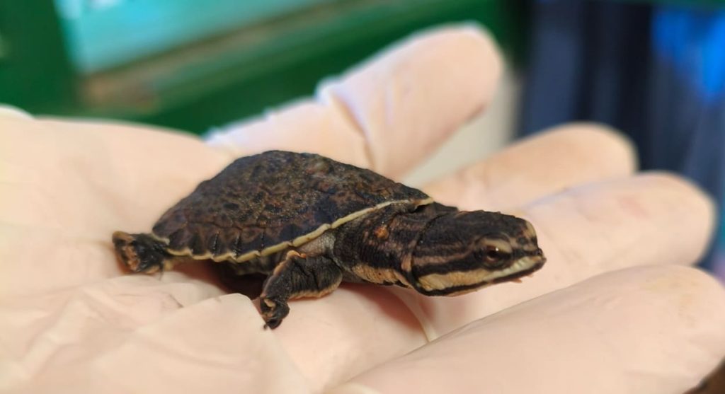 Nas últimas semanas, aumentou a quantidade de filhotes de cágados-rajados (Phrynops williamsi) avistados em uma área próxima à margem do Rio Iguaçu.