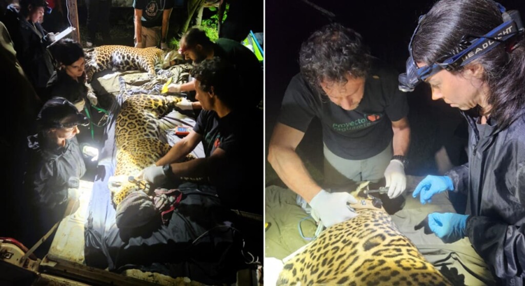 Sedadas, as duas onças passaram por exames para verificação de seu estado de saúde e receberam um colar de monitoramento. Além disso, os cientistas fizeram a extração de material genético para a ampliação do banco de dados da província.