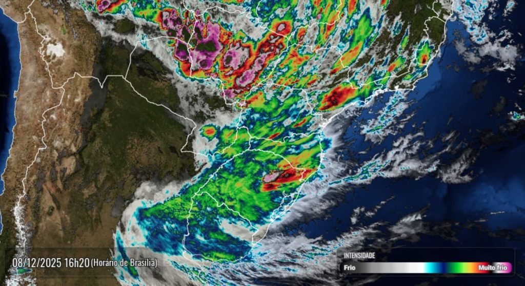 Conforme a Defesa Civil de Foz do Iguaçu, o tempo severo se deve a um ciclone extratropical incidindo sobre o Sul, Sudeste e Centro-Oeste do Brasil.