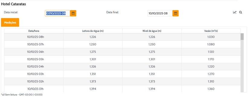 Por outro lado, na estação Porto Capanema, águas acima de Foz do Iguaçu, o fluxo chegou a cair para 577m³/s na noite passada. Durante a madrugada, contudo, voltou a crescer e chegou à faixa de 1.400m³/s às 4h.
