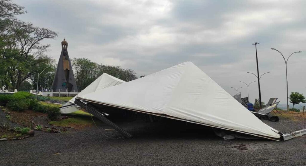 Em Itaipulândia, município às margens do lago de Itaipu, houve estragos na estrutura montada para a recepção de devotos no santuário de Nossa Senhora Aparecida.