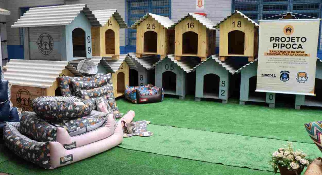 A iniciativa foi batizada de Pipoca para homenagear uma cachorrinha em situação de rua que passou a viver em uma unidade penitenciária da cidade. O projeto é apoiado por uma indústria, que doou os paletes.