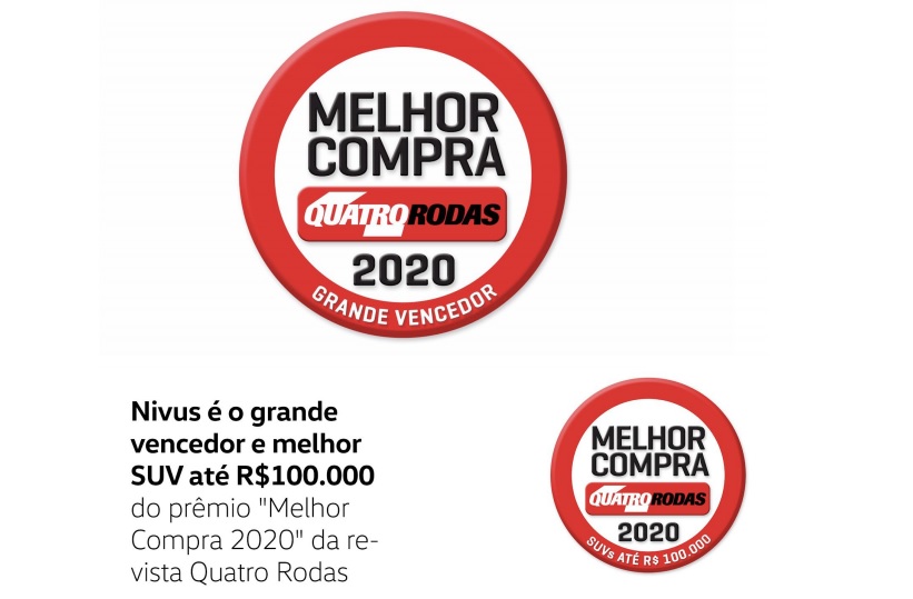 Recentemente lançado, VW Nivus conquistou o prêmio GRANDE vencedor do “Melhor Compra 2020” da revista Quatro Rodas e a versão Highline conquistou o prêmio na categoria SUVs até R$100 mil.