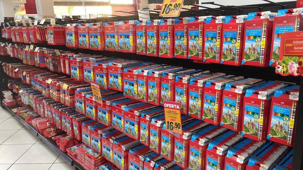 - Lápis de cor Faber-Castell com 12 cores – R$ 16,90
