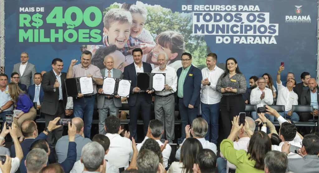O governador Ratinho Junior (PSD) anunciou o repasse de mais de R$ 400 milhões às 399 cidades paranaenses para custeio da educação e da saúde. Para a saúde, os recursos serão utilizados em duas frentes: para consultas e exames especializados e aumento do repasse para o Consórcio Paraná Saúde, responsável pelas compras de medicamentos utilizados na atenção básica. Na educação, os recursos são para custeio do Programa Estadual do Transporte Escolar.
