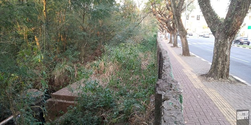 Nas fotos 15, 16, 17 e 18, pode-se observar ao nível da rua, na Avenida JK, a baixada e o muro que esconde o rio; a parte de trás do muro desde o estacionamento da Unifoz; e a parte superior da galeria antes de seu fim.