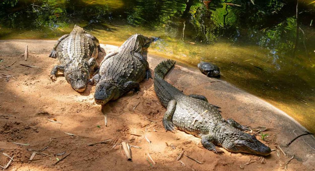 Os jacarés e outros animais mantidos pelo Parque das Aves são, em muitos casos, resgatados de situações como cativeiro e tráfico. O local também desenvolve pesquisas para a reprodução de espécies ameaçadas.