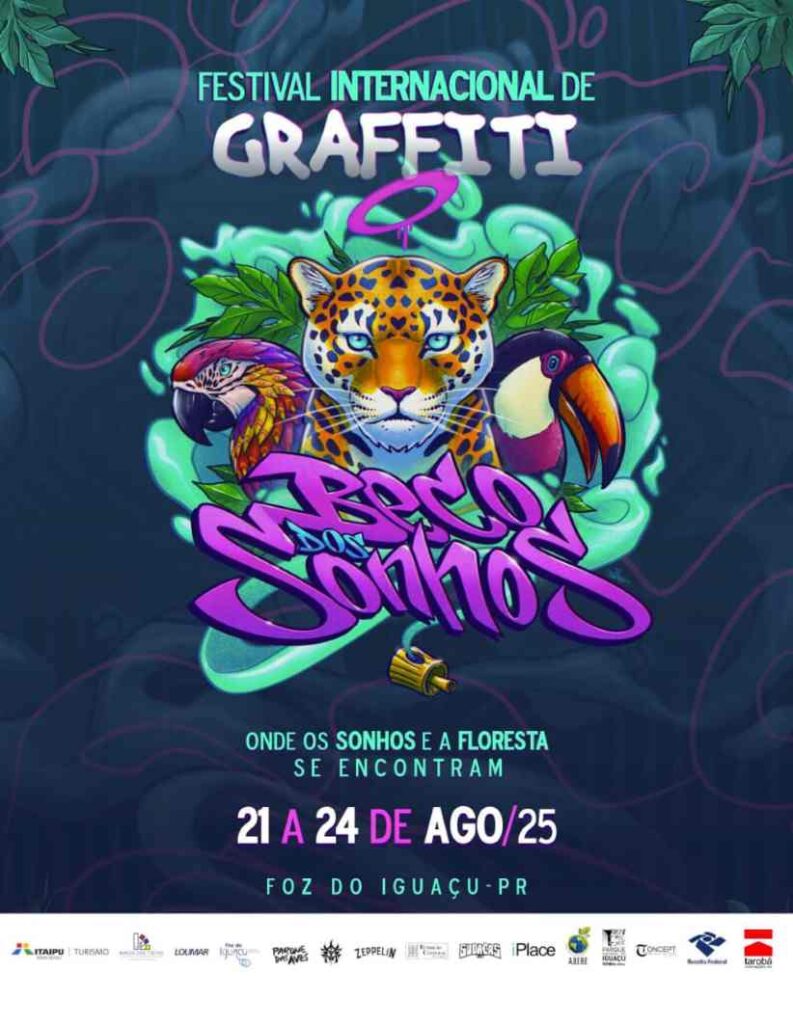 Foz do Iguaçu vai ganhar uma galeria a céu aberto com a arte de 40 grafiteiros, mobilizados para o Festival Internacional de Graffiti Beco dos Sonhos. A ação cultural será de 21 a 24 de agosto.