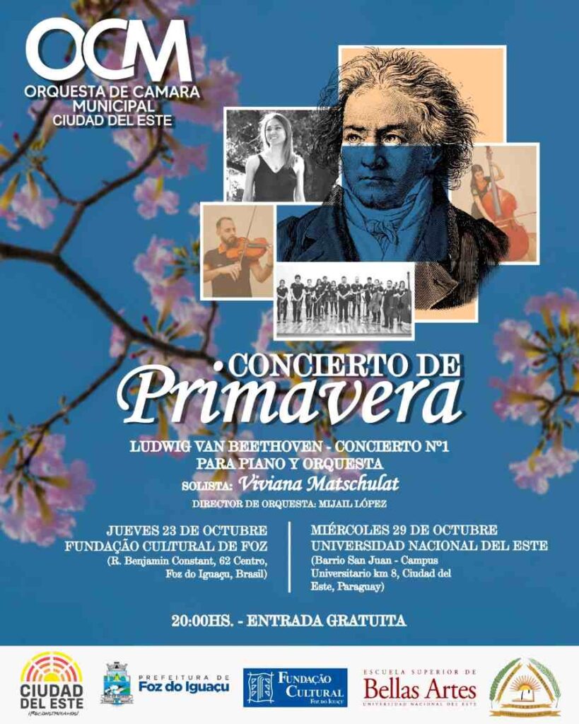 O concerto para a comunidade será da Orquestra de Câmara de Ciudad del Este (OCM). São 15 instrumentistas conduzidos pelo maestro Mijail López, que vêm se apresentando regularmente em teatros, igrejas e espaços culturais na região trinacional.