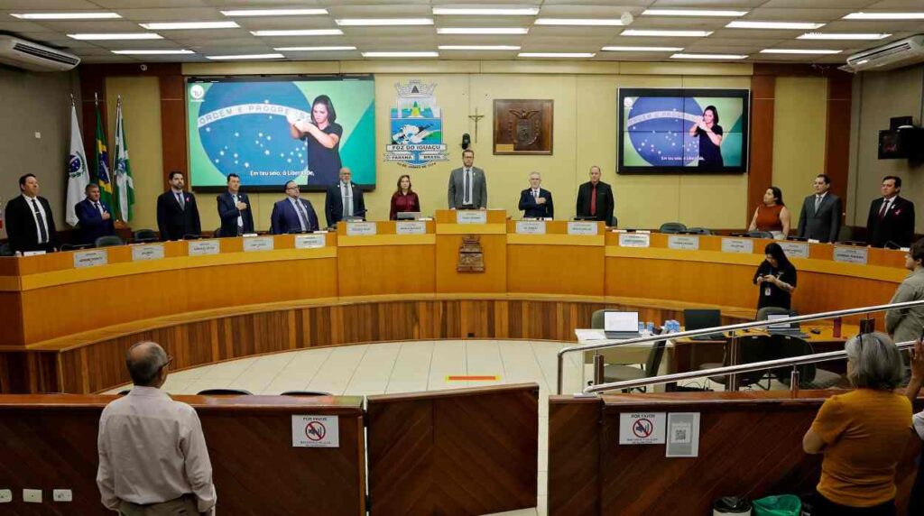 O PL, partido do prefeito, à direita, deu um voto a Brasileiro. O PP, da chapa de Paulo Mac Donald Ghisi na eleição municipal do ano passado, teve dois votantes favoráveis.