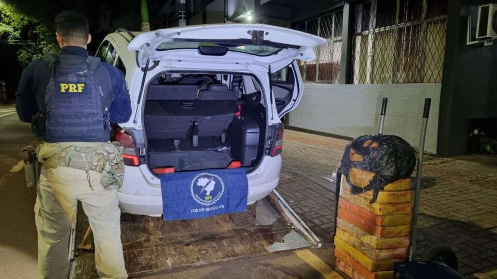 O carro, a droga e os presos foram encaminhados à Polícia Federal em Cascavel.
