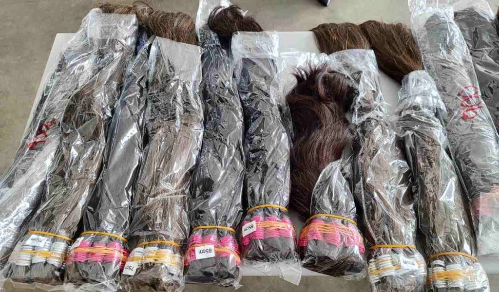 Para cada peruca, 350 gramas de cabelo