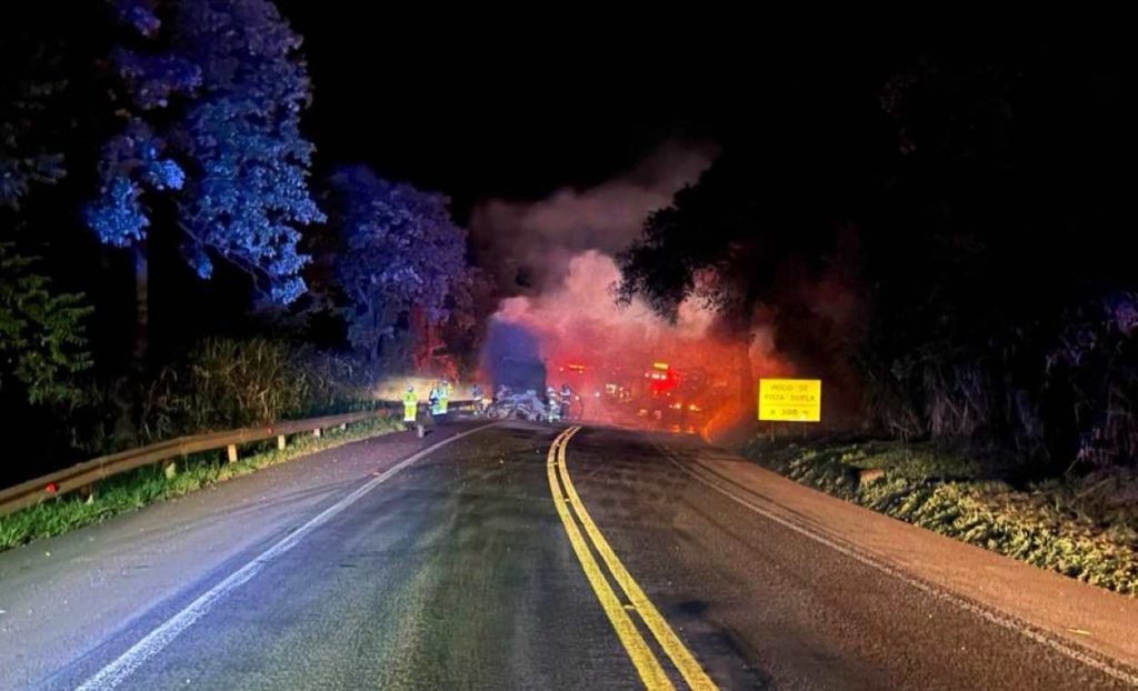 A vítima, que morreu carbonizada, dirigia o carro e não foi identificada; o caminhoneiro não se feriu. O automóvel tem placas de Metelândia, conforme a instituição.