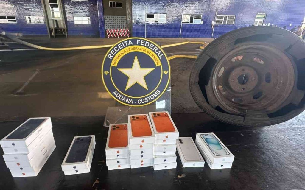 A Receita Federal do Brasil (RFB) em Foz do Iguaçu abriu um pneu e encontrou R$ 180 mil em celulares na Ponte Internacional da Amizade. O estepe estava preparado com fundo falso para driblar a fiscalização na fronteira do Brasil com o Paraguai.
