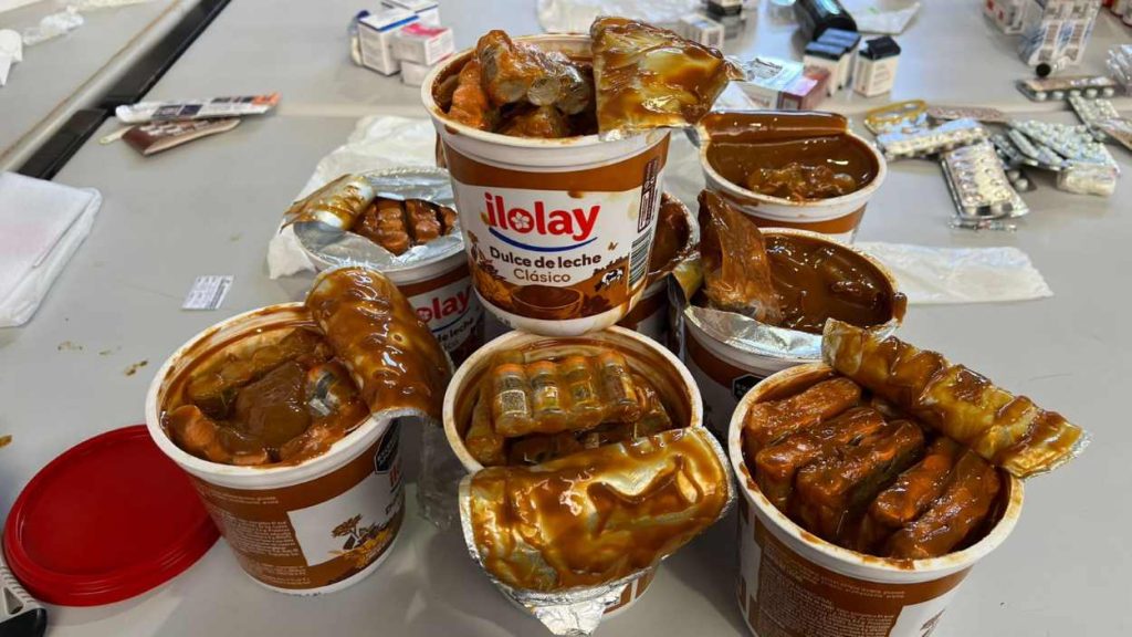 Uma apreensão inusitada foi registrada nesta quinta-feira, 30, pela Receita Federal (RF) em Foz do Iguaçu. Cerca de 550 ampolas de medicamentos para emagrecimento estavam escondidas em potes de doce de leite de marca argentina encontrados em diferentes compartimentos de um ônibus de turismo.