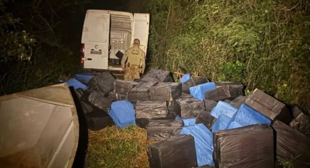 Uma van carregada de cigarros também estava estacionada em uma trilha, indicando, segundo a polícia, que a carga trazida do Paraguai abasteceria o veículo para posterior transporte ao Brasil.