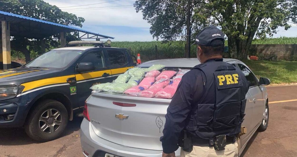 Os comprimidos coloridos foram camuflados em pufes, um tipo de móvel acolchoado. A mulher, que não possui CNH, foi abordada após fazer uma ultrapassagem proibida na BR-277 e demonstrou nervosismo.